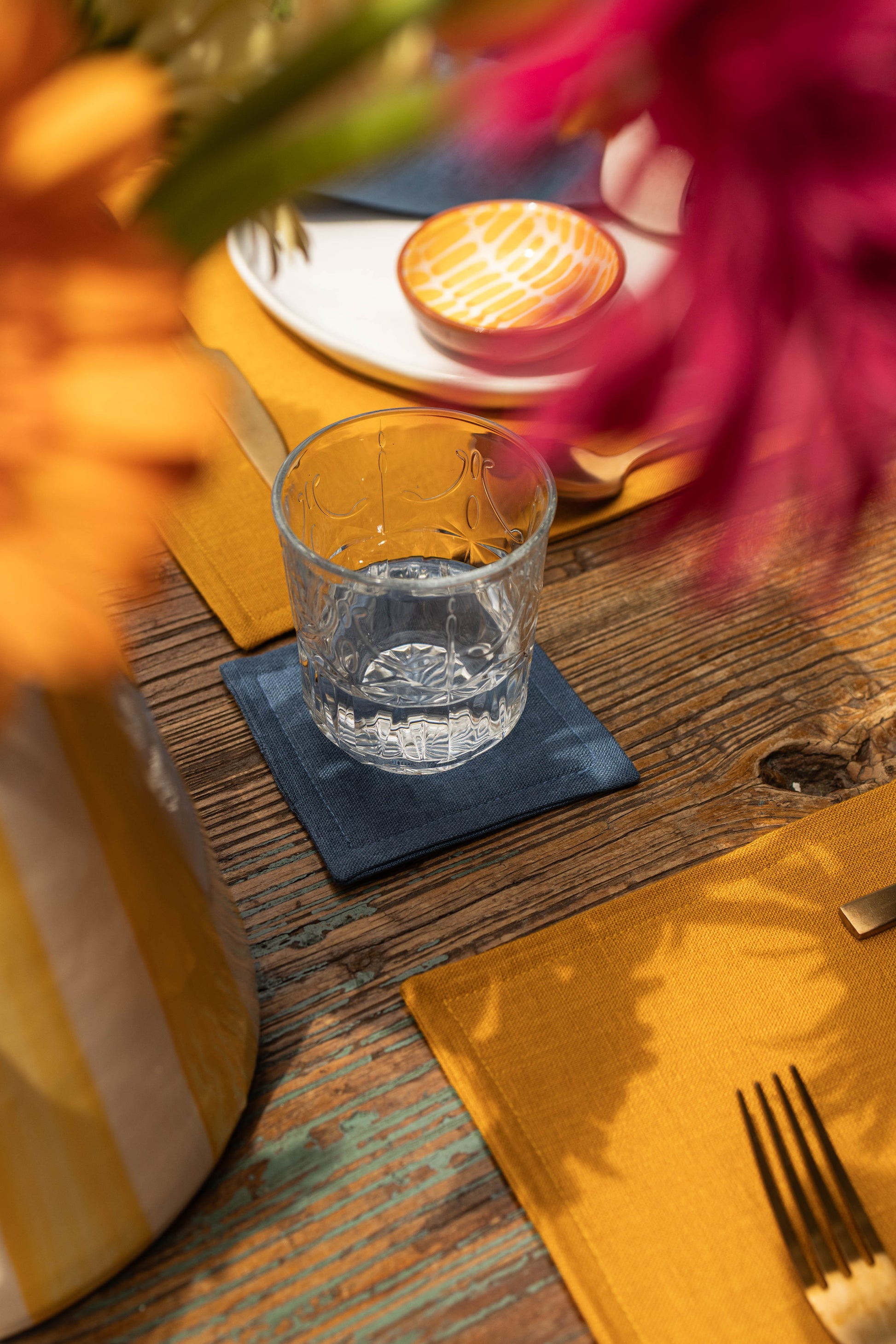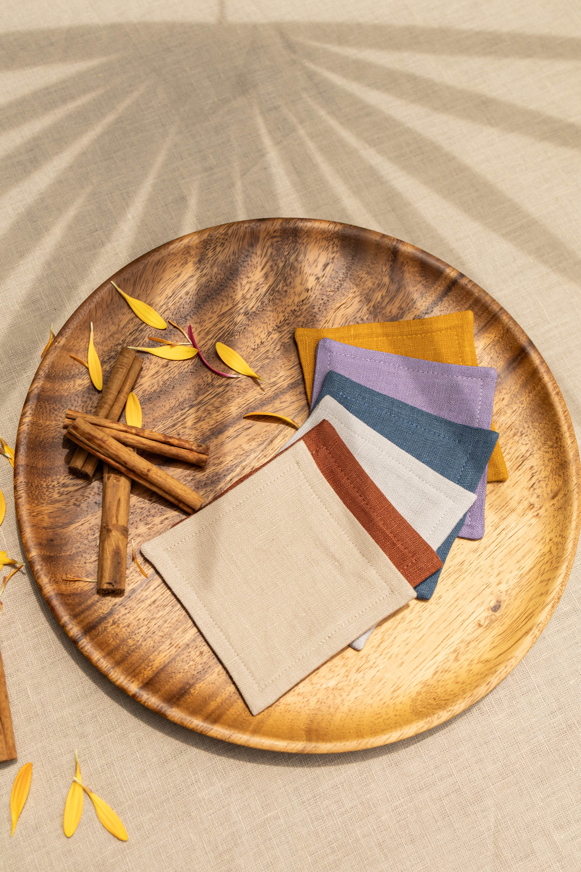 These 100% linen coasters protect your surfaces while absorbing condensation from cold water glasses to keep your table dry. Available in different colors. These coasters are both stylish and practical, great for everyday use!